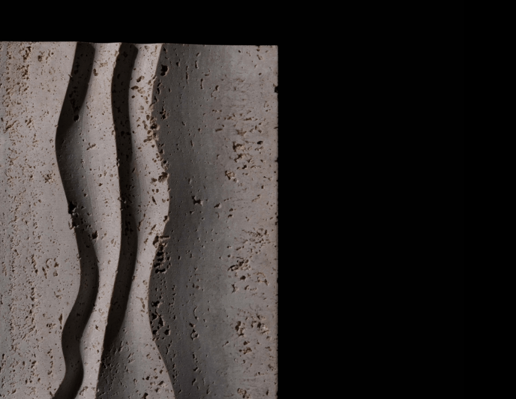 Borrowed Earth uses recycled materials and smaller blocks considered to be imperfect, choosing materials only from quarries that extract in a sustainable manner while sourcing materials close to the manufacturing unit to reduce transportation emissions. Conserving water in the stone manufacturing process is also a big part of their sustainability mission. Transforming even the incidental remnant materials, into artistic shapes and surfaces.