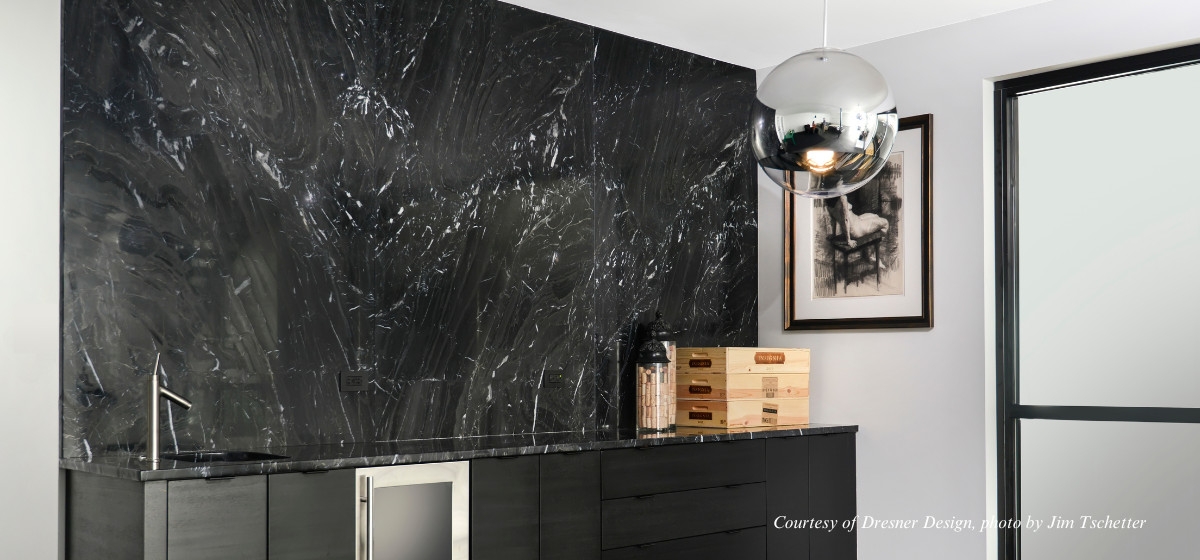 Statement marble continues to be a sought-after material in kitchen and bath design, adding a touch of luxury and sophistication to interiors. Characterized by striking veining, bold patterns, and rich colors, statement marble creates visual interest and elevates the overall aesthetic of a space. Whether used for countertops, backsplashes, or flooring, marble makes a dramatic statement and serves as a focal point in both traditional and contemporary settings. This trend can be found in many Dresner Design kitchens and reflects a timeless appreciation for natural materials and the enduring allure of marble in interior design.